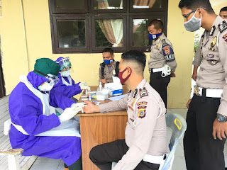 Sebanyak 50 Personel Ditlantas Polda Aceh, Jum'at (5/6) dilakukan Rapid Test oleh Tim medis Rumah Sakit Bhayangkara Polda Aceh.